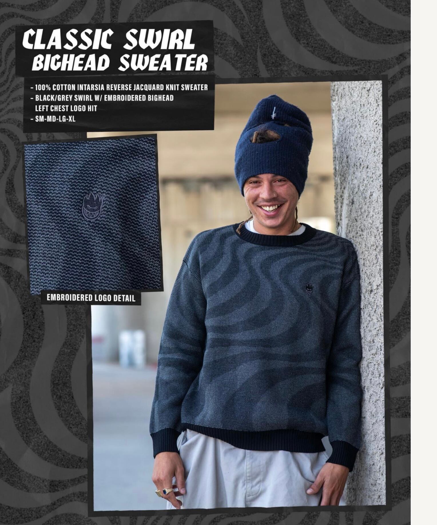 SPITFIRE CLASSIC SWIRL BIGHEAD FILL EMB L/S Custom Jacquard Knit Sweater BLACK/GREY L