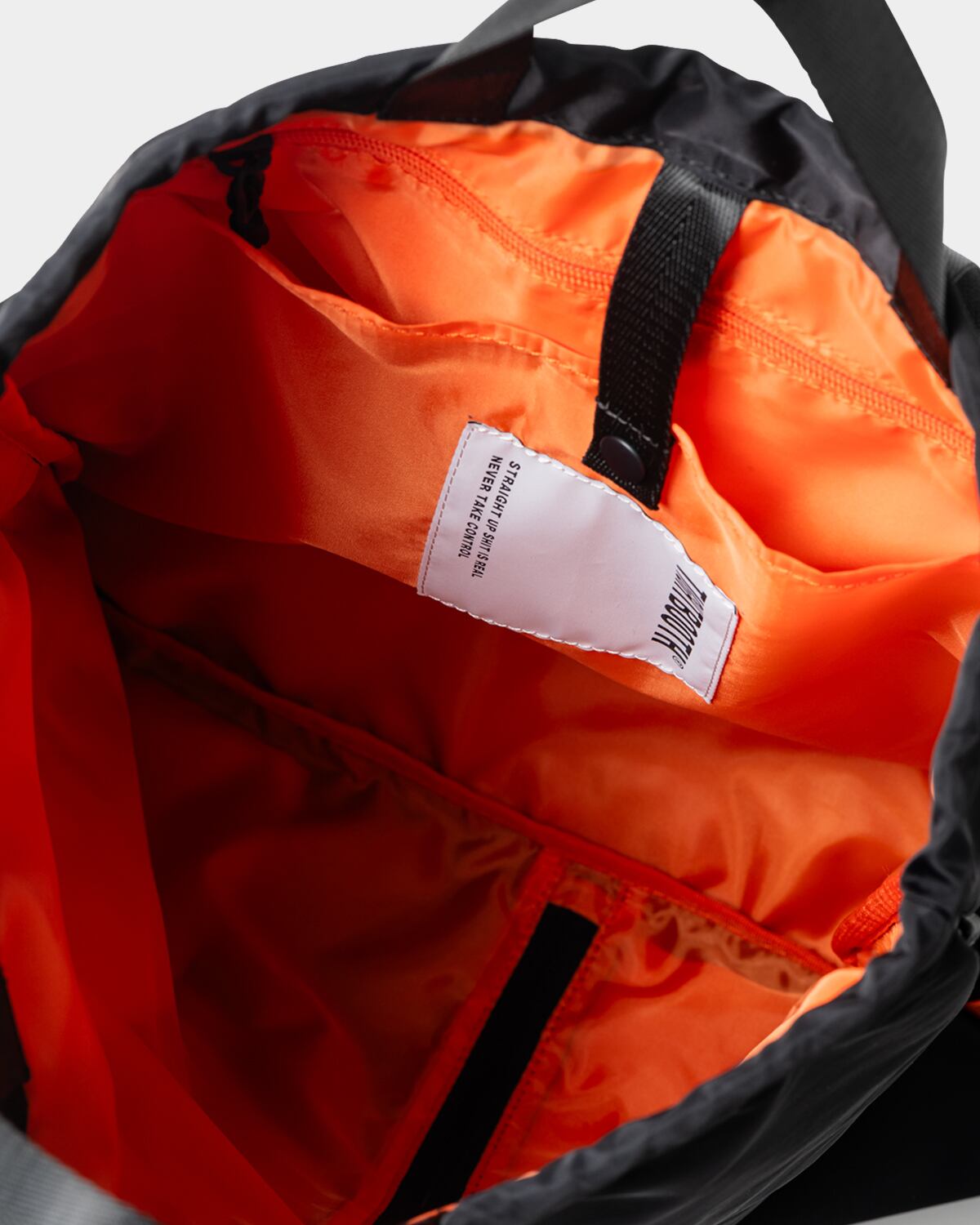 内側はストラップ付きポケットとファスナーポケットを搭載。