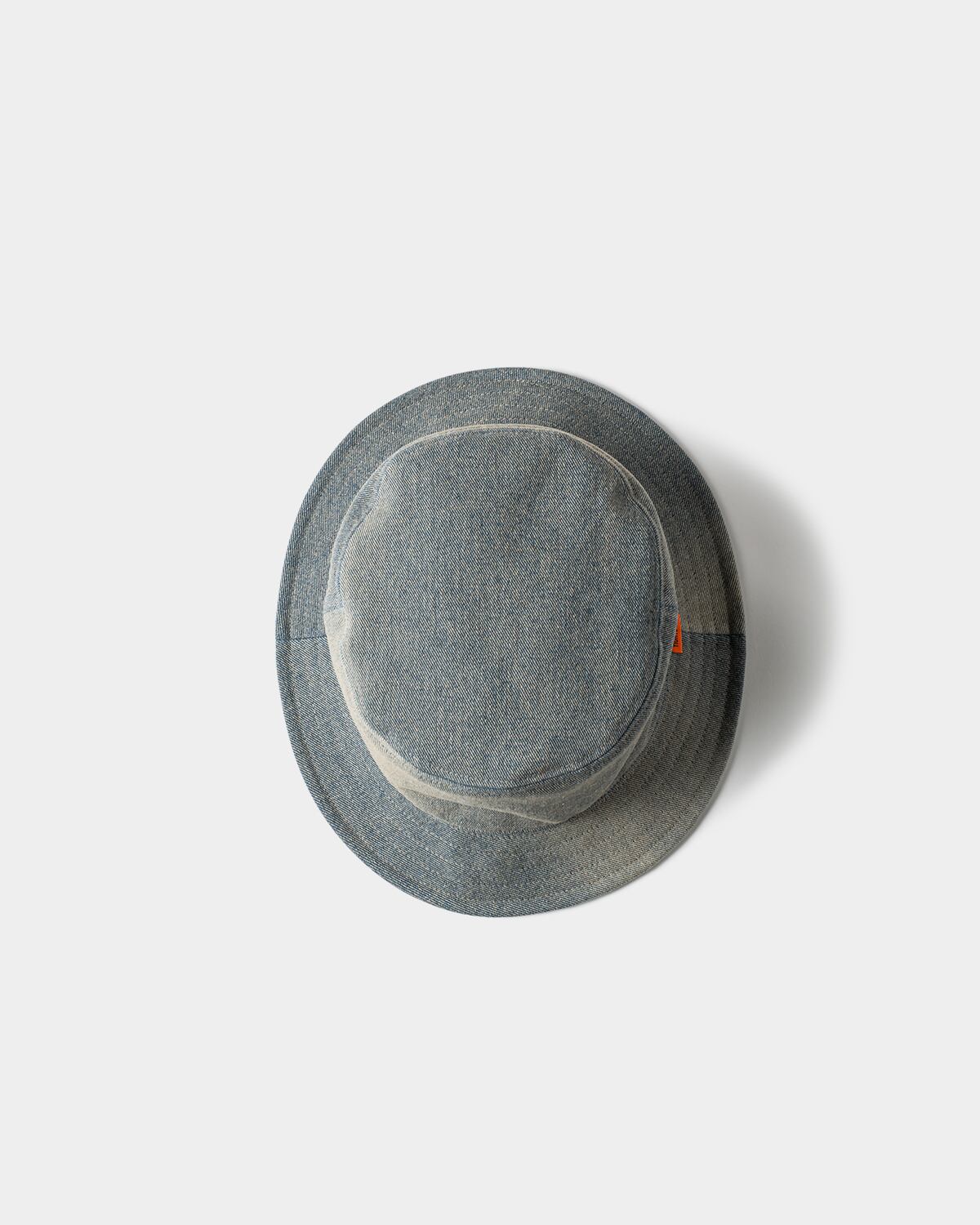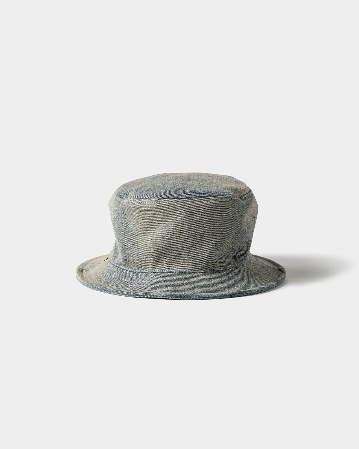 洗いに加え、部分的にオーバーダイ加工を施したデニム生地のバケットハット。