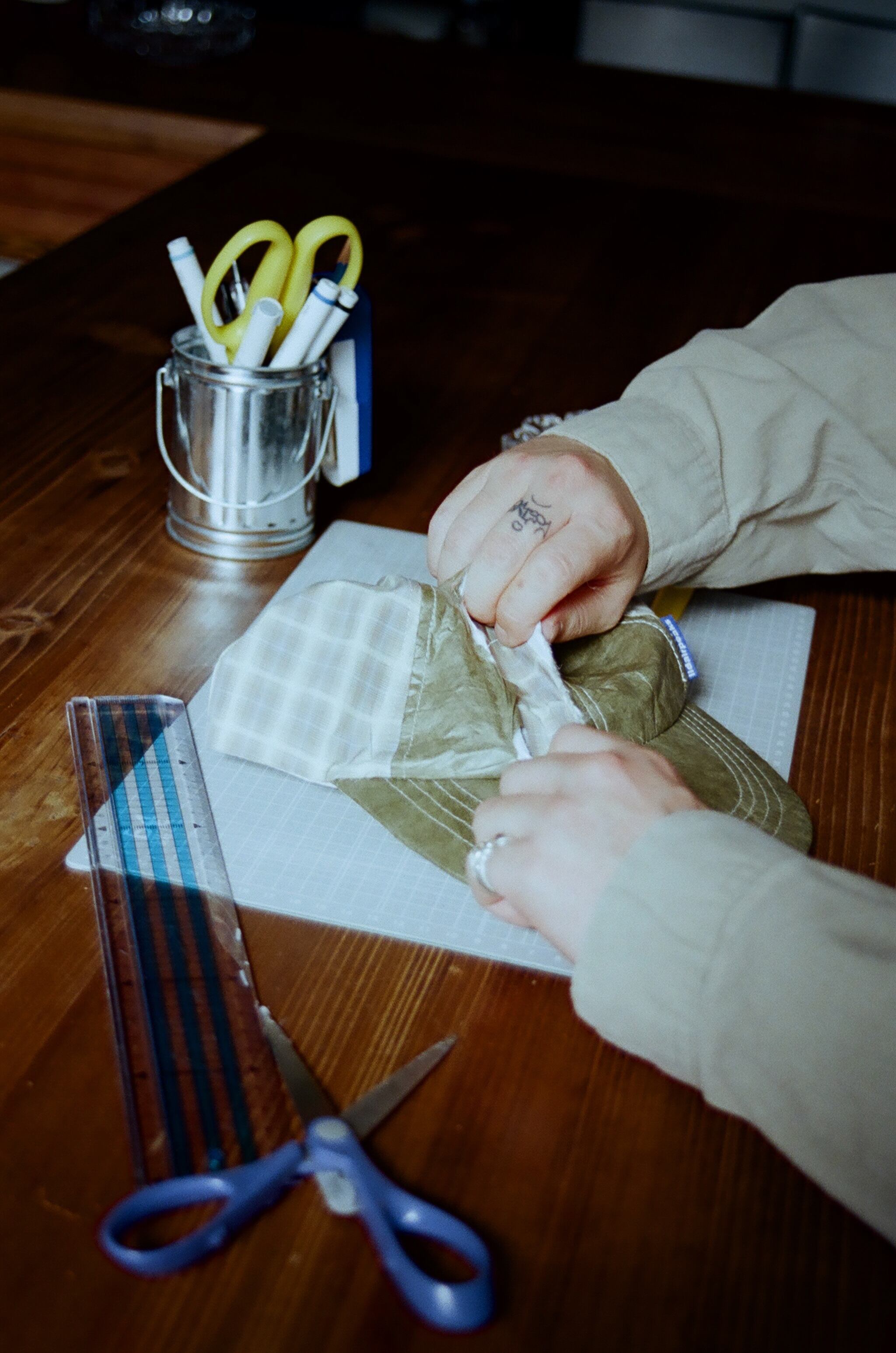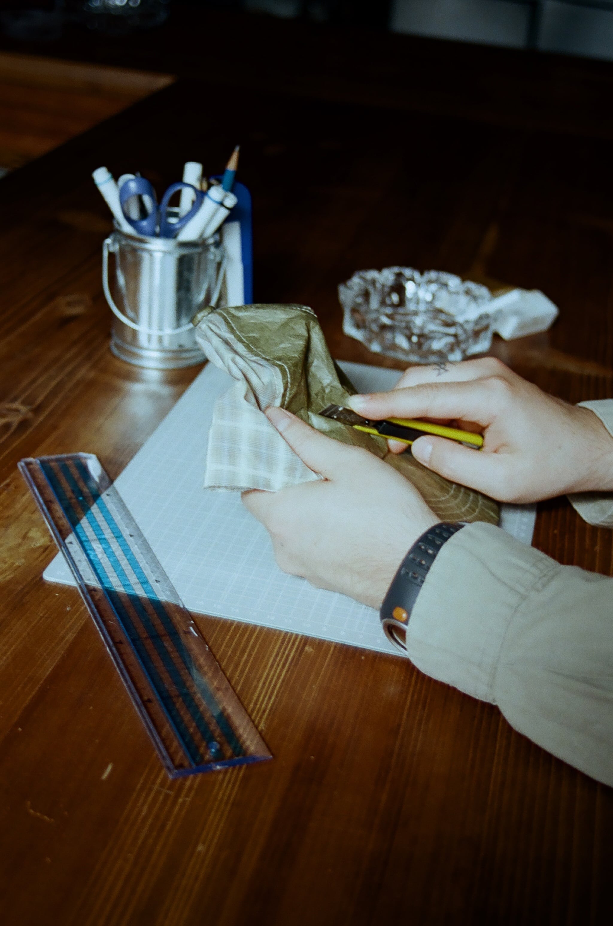 また、あえてテックペーパー素材を破ることで下地のチェック生地が現れ、異なる表情へと変化する過程も楽しめる仕様になっています。