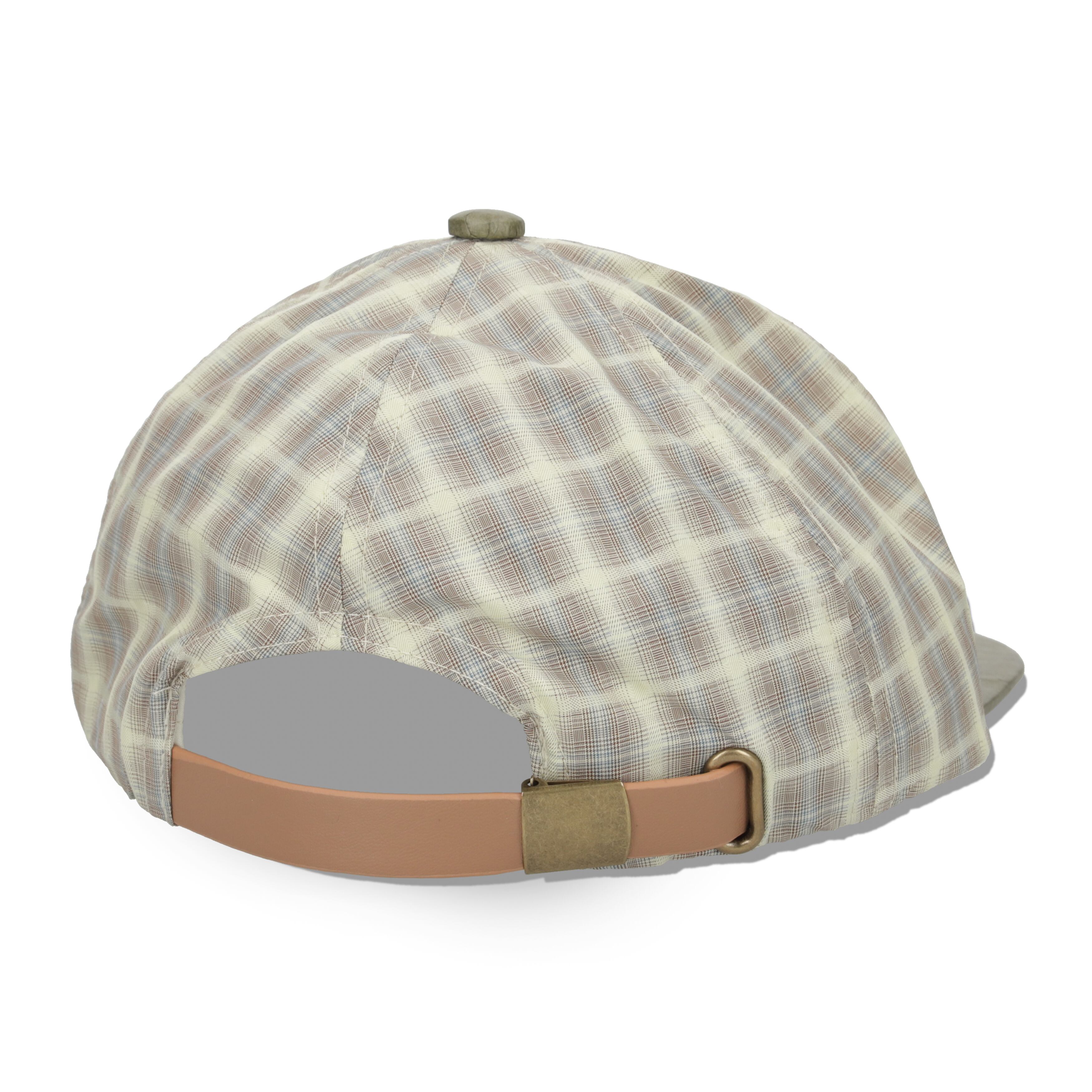 フロントパーツにはペーパーライクなテック素材を使用し、サイドにはポリエステルのチェック生地を採用しています。