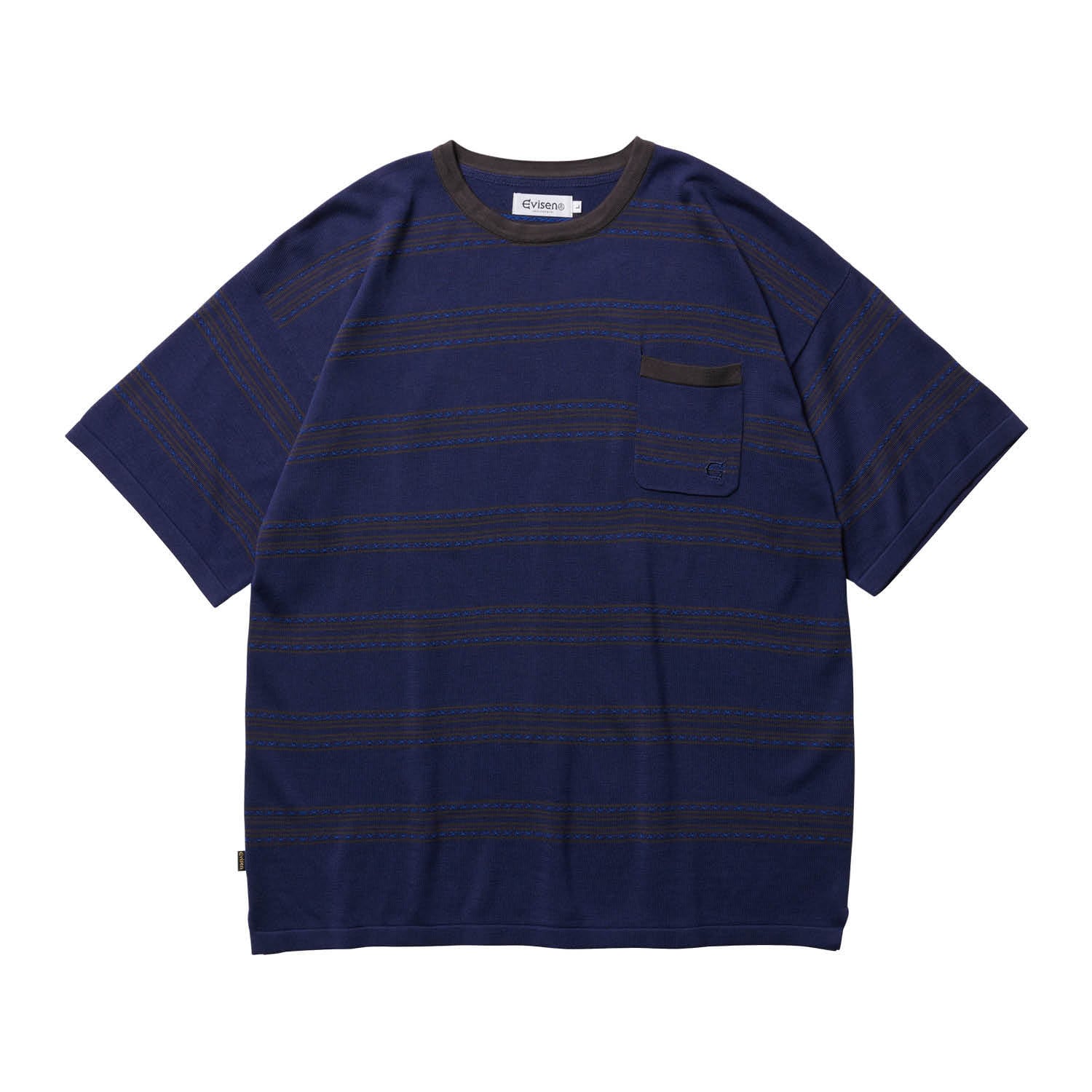 EVISEN MODAL BORDER KNIT T-SHIRT NAVY